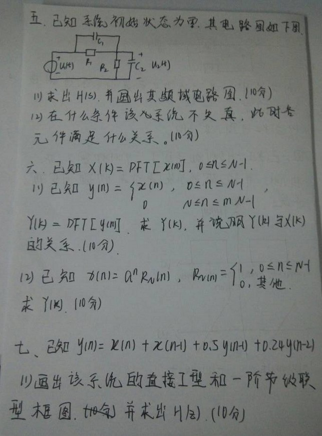 2016云南大学827信号与系统半岛在线注册真题(3)