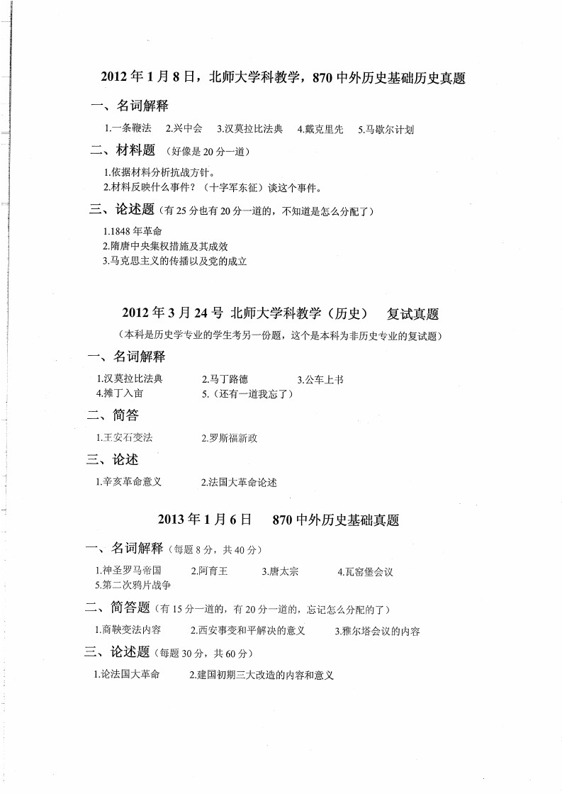 2001-2012年北京师范大学历史学所有专业综合半岛在线注册真题及部分答案(21)