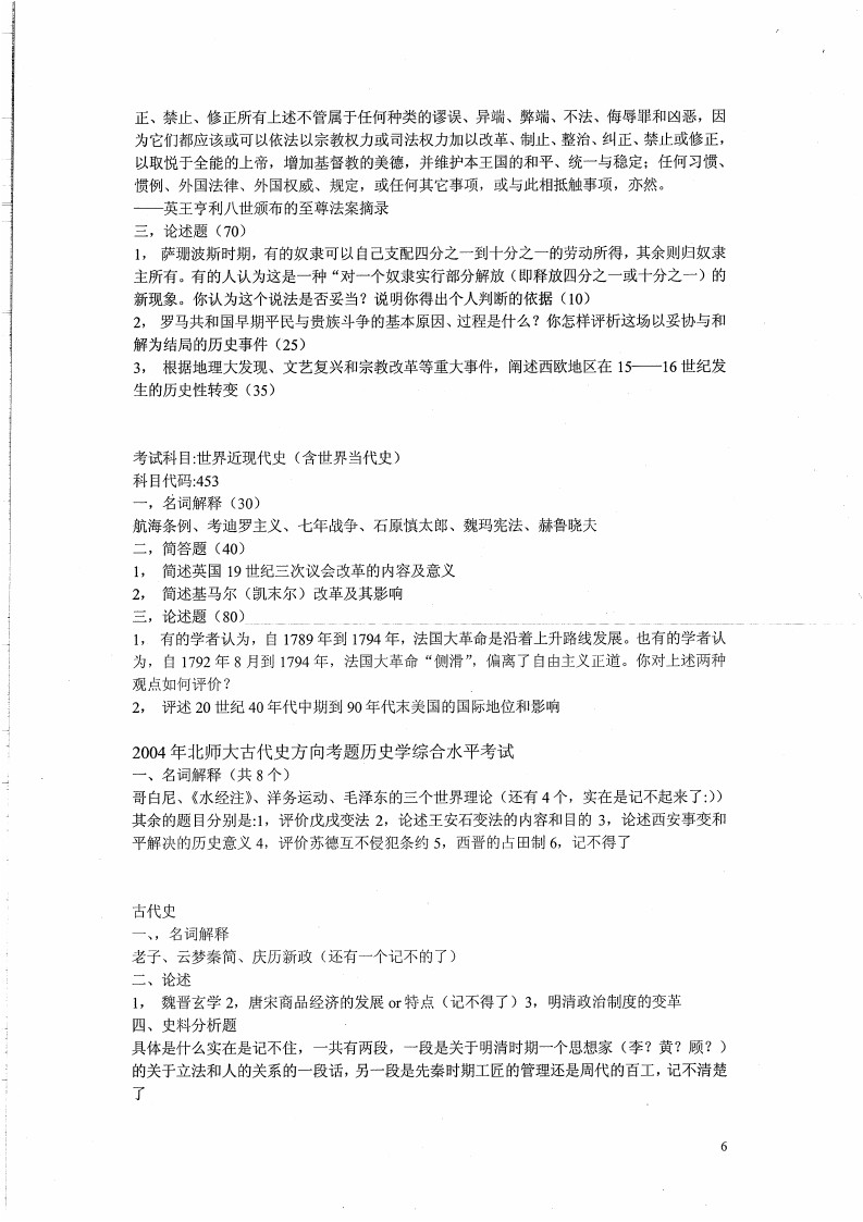 2001-2012年北京师范大学历史学所有专业综合半岛在线注册真题及部分答案(6)