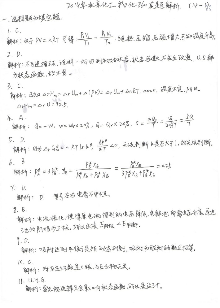 标题: 中科院825物化乙真题回忆