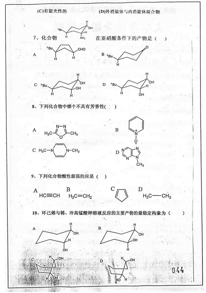 2007年湖南大学有机化学半岛在线注册真题试卷(2)