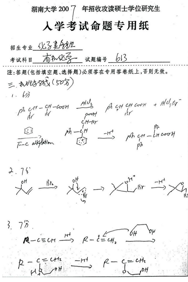 2007年湖南大学有机化学半岛在线注册真题试卷(9)