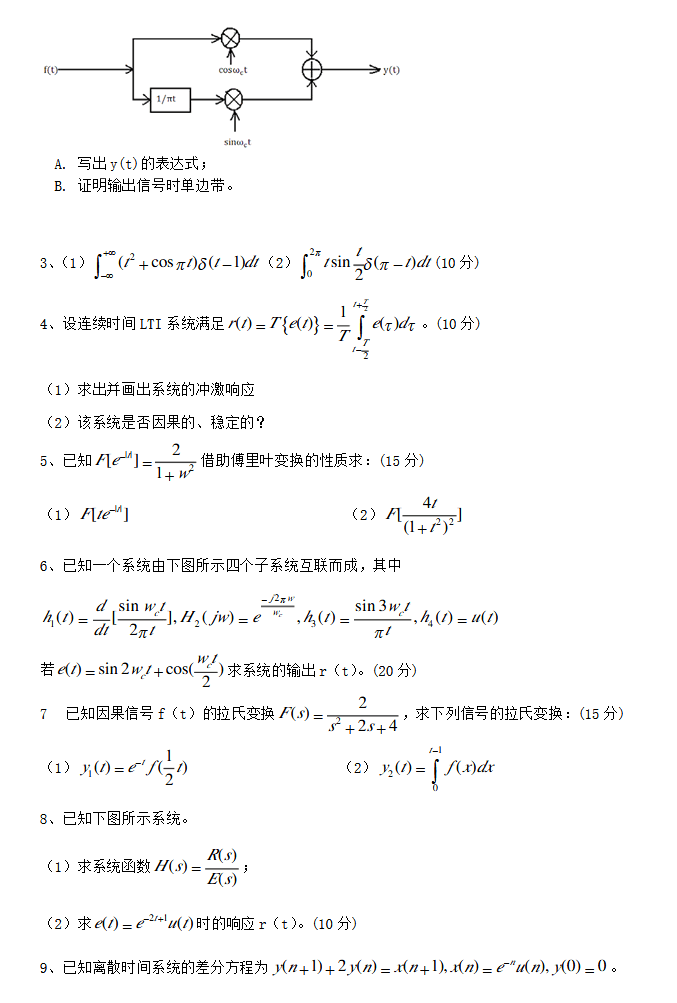 中国科技大学843信号与系统半岛在线注册模拟题三带详细答案(2)