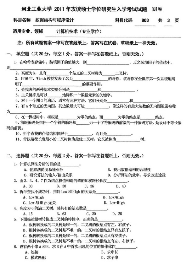 填空十个空,20分,这些都是最简单的,树的知识,链表的知识