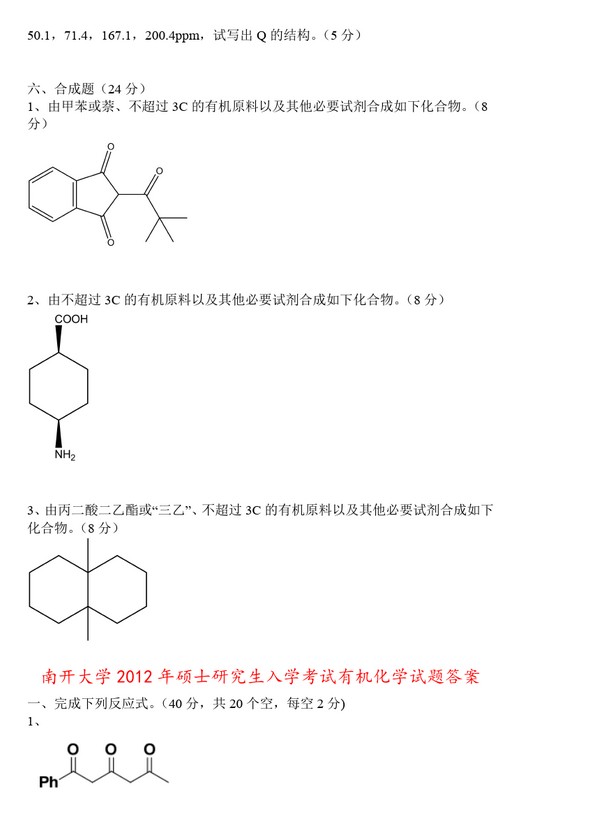 南开大学2010年-2013年有机化学半岛在线注册真题及答案详解(43)