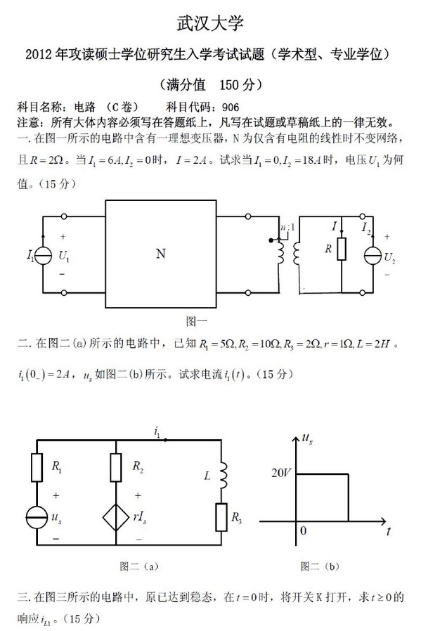 武汉大学2000年-2015年电路半岛在线注册真题高清版(33)