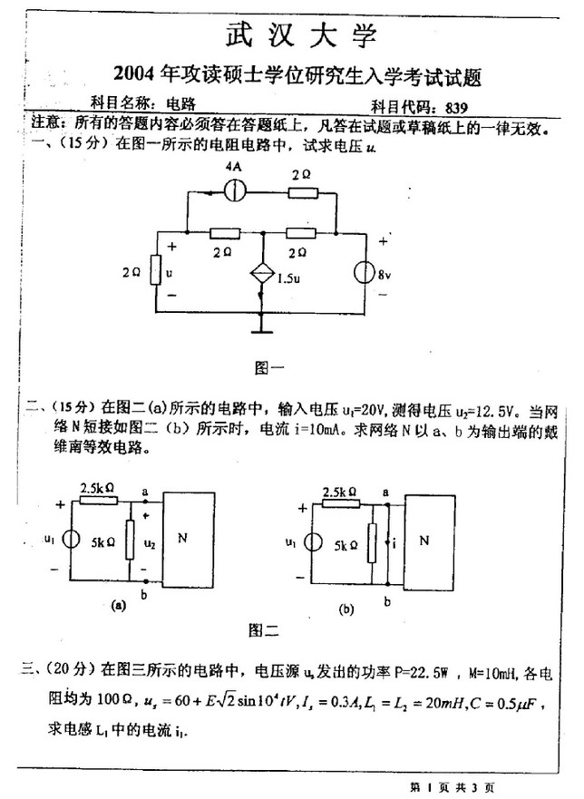 武汉大学2000年-2015年电路半岛在线注册真题高清版(7)