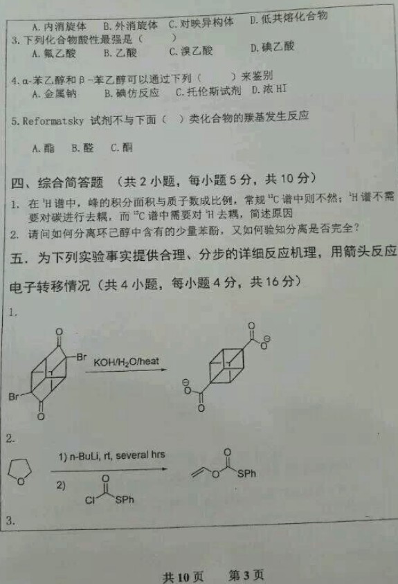 2014年武汉大学963有机化学半岛在线注册真题试卷及答案(3)