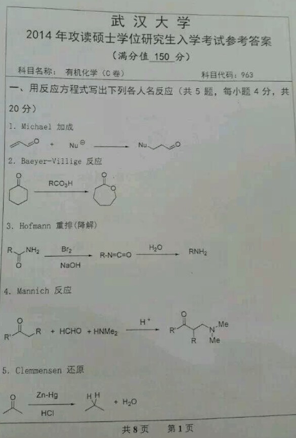 2014年武汉大学963有机化学半岛在线注册真题试卷及答案(9)