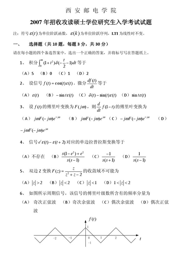 西安邮电大学2007年824信号与系统半岛在线注册真题
