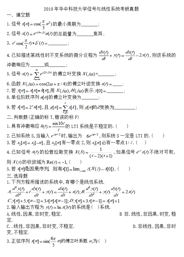2010-2014年华中科技大学信号与系统824半岛在线注册真题带详细答案