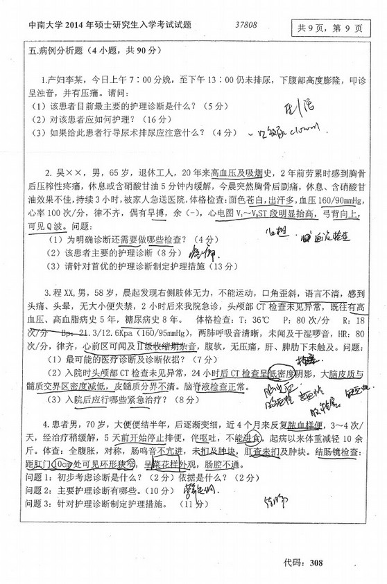 病理分析,三道题,护理基础比较偏,考了导尿,外科考的消化性溃疡穿孔