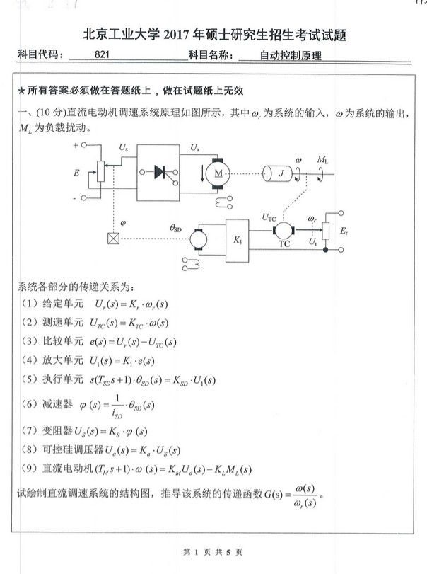 2017北京工业大学821自动控制原理半岛在线注册试题