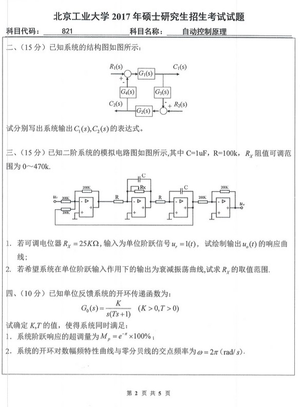 2017北京工业大学821自动控制原理半岛在线注册试题(2)