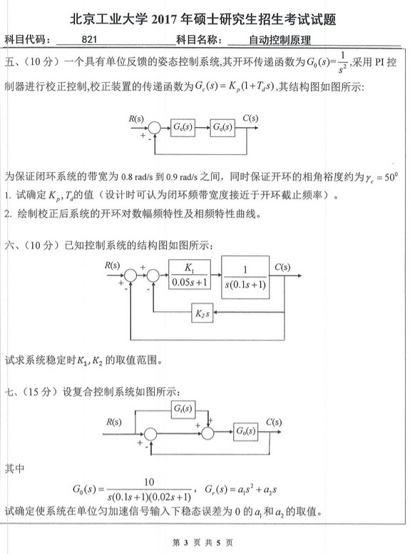 2017北京工业大学821自动控制原理半岛在线注册试题(3)