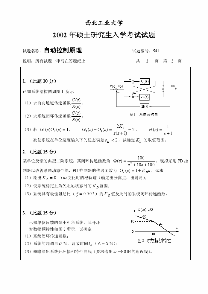 西北工业大学2001-2010自动控制原理半岛在线注册试题(4)