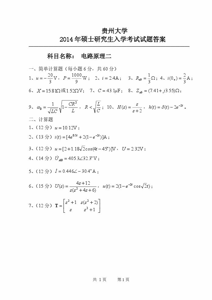 2000-2014年贵州大学电路半岛在线注册真题与答案解析(75)
