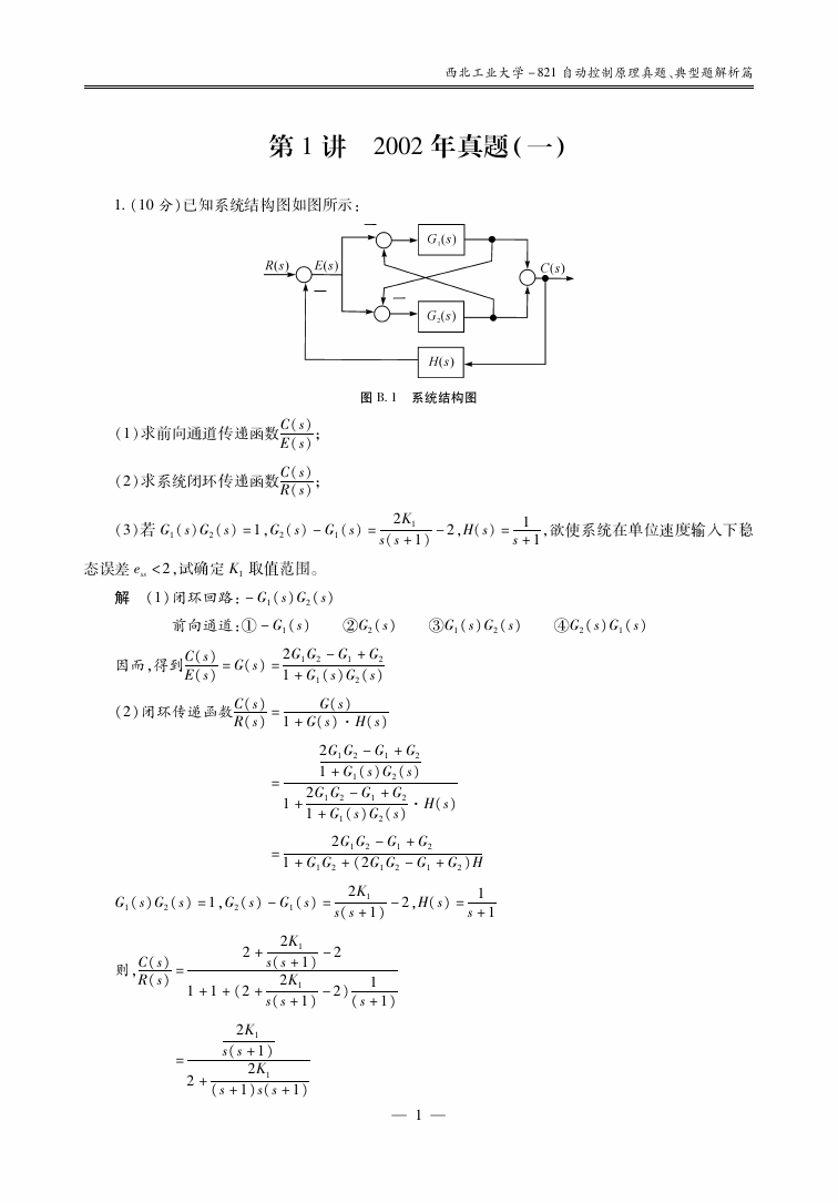 西北工业大学821自动控制原理重难点解析课程讲义wenku.baidu.com/view/5056fc5076c66137ef061901.html ...