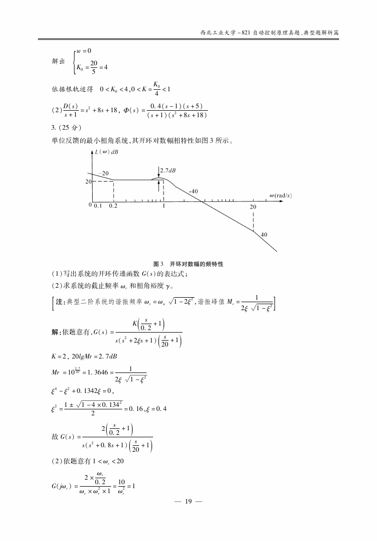 西北工业大学2002-2006半岛在线注册821自动控制原理真题典型题解析详细答案(19)