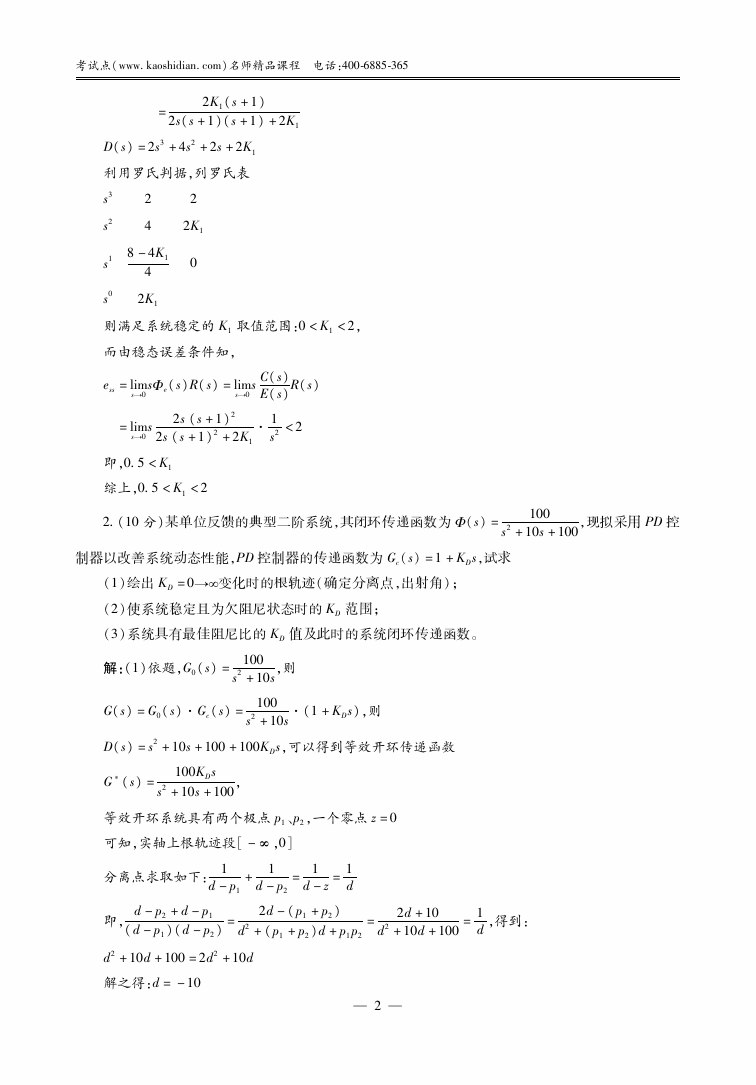 西北工业大学2002-2006半岛在线注册821自动控制原理真题典型题解析详细答案(2)