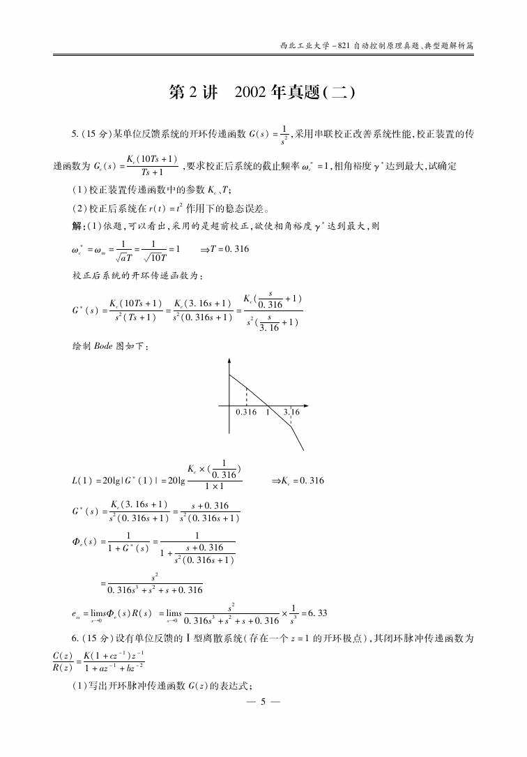 西北工业大学2002-2006半岛在线注册821自动控制原理真题典型题解析详细答案(5)