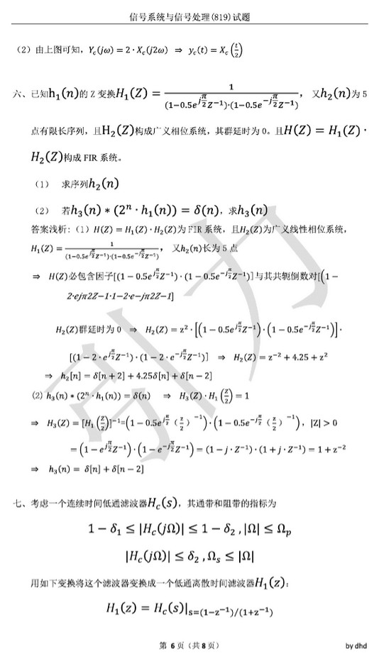 2011年上海交通大学819信号系统与信号处理半岛在线注册真题答案(6)