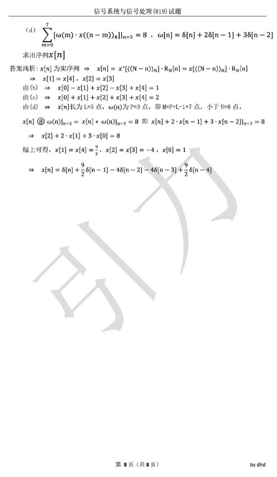 2011年上海交通大学819信号系统与信号处理半岛在线注册真题答案(8)