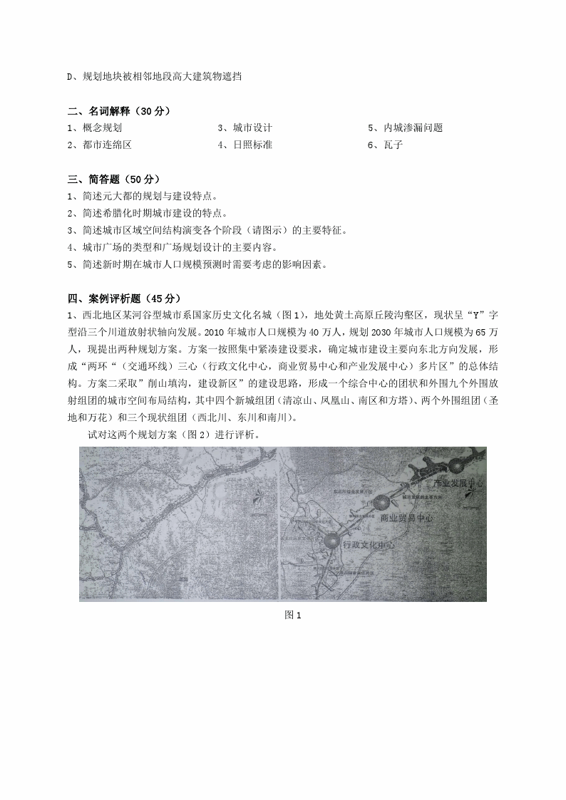 选择题: 城市性质定义、土地利用总体规划的主要目标、修建性详细规划的基本特征、下列选项中不属于居住区布置形式的是?、为减少城市**空间容量,处理**的顺序为? 名词解释: 1.城镇体系 2.慢行交通 3.城市意象 4.城市职能 5.容积率 6.(忘了) ...