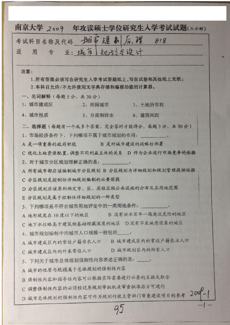 选择题: 城市性质定义、土地利用总体规划的主要目标、修建性详细规划的基本特征、下列选项中不属于居住区布置形式的是?、为减少城市**空间容量,处理**的顺序为? 名词解释: 1.城镇体系 2.慢行交通 3.城市意象 4.城市职能 5.容积率 6.(忘了) ...