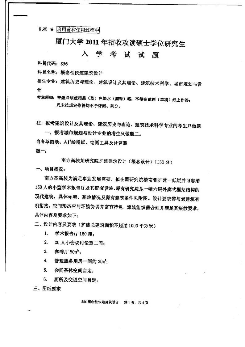 厦门大学2014-2010概念性快速建筑设计856半岛在线注册试题(4)