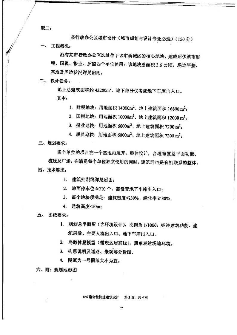厦门大学2014-2010概念性快速建筑设计856半岛在线注册试题(6)