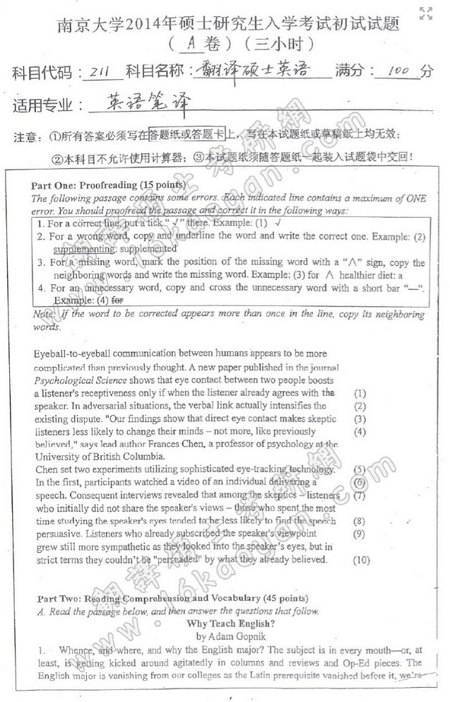 专业课半岛在线注册资料 本站小编 半岛在线注册 2020-02-172010年中国海洋大学211翻译硕士英语半岛在线注册真题及详解