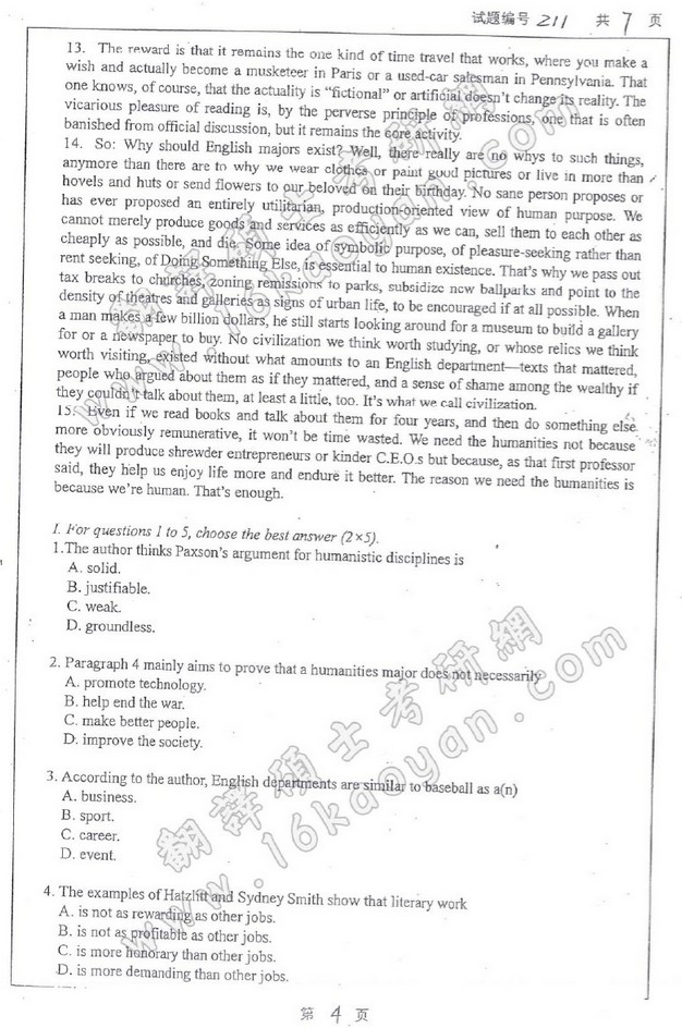 南京大学2014翻译硕士MTI半岛在线注册真题三科翻译硕士英语,英语翻译基础,汉语写作与百科知识(4)