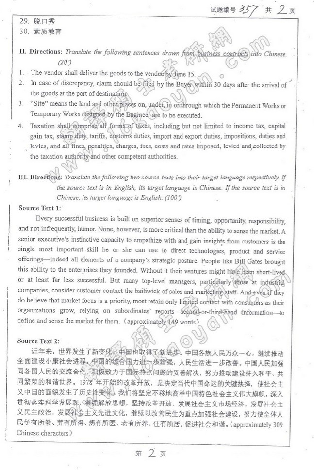 南京大学2014翻译硕士MTI半岛在线注册真题三科翻译硕士英语,英语翻译基础,汉语写作与百科知识(9)