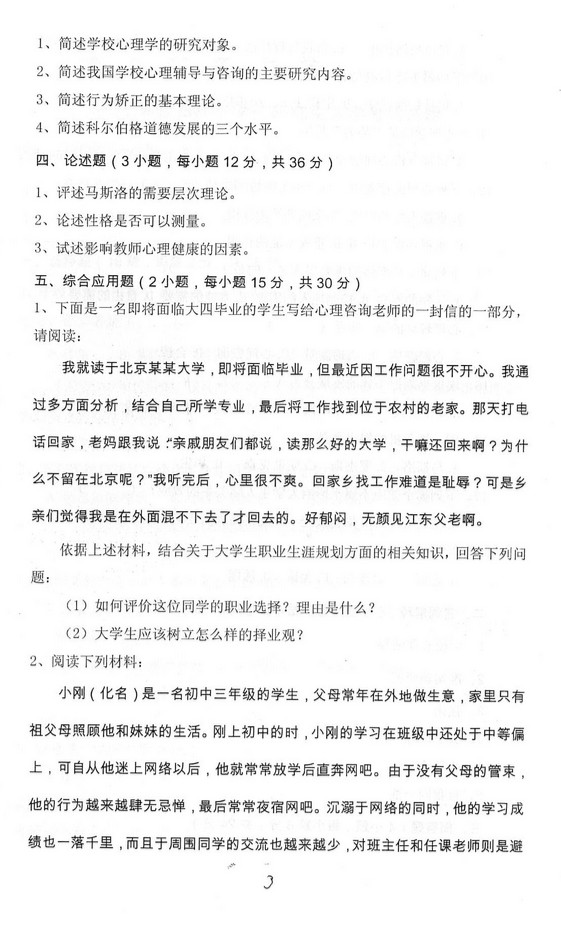 西北师范大学2015年843学生心理健康教育与辅导半岛在线注册真题试卷(3)
