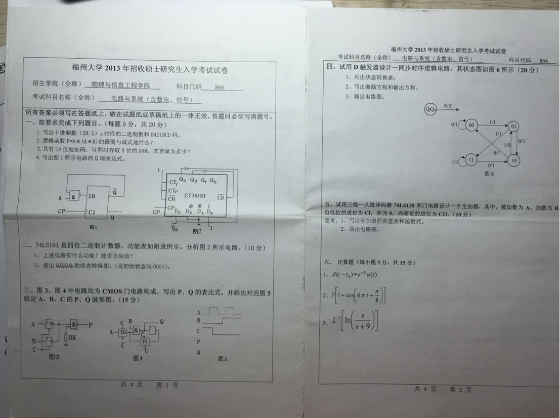 福州大学2014-2012电路与系统866半岛在线注册真题试卷(3)