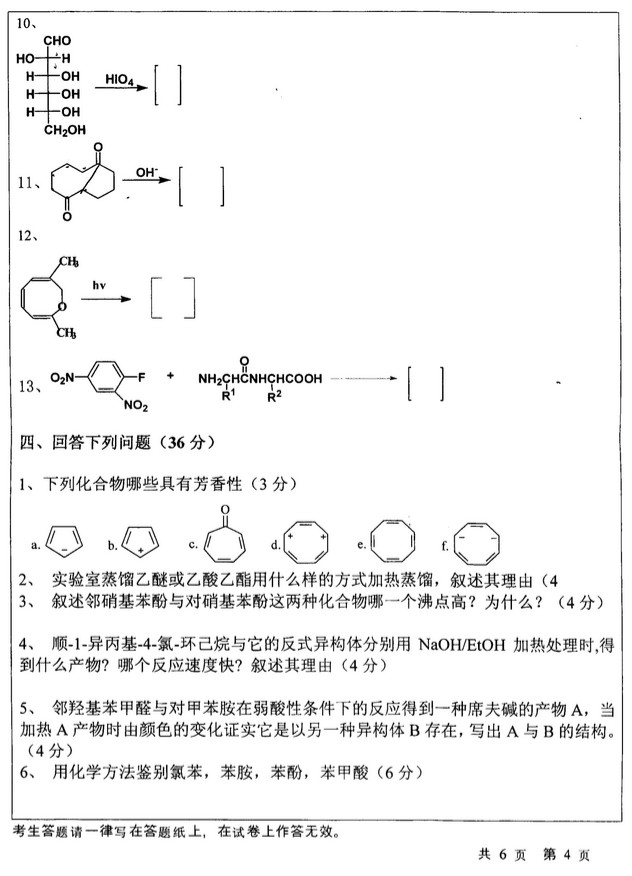 2012年华中师范大学有机化学719半岛在线注册真题(4)