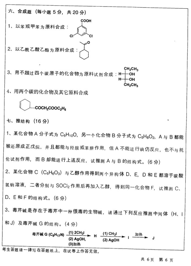 2012年华中师范大学有机化学719半岛在线注册真题(6)