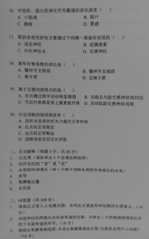 2014年上海理工大学844生理学半岛在线注册试题(3)