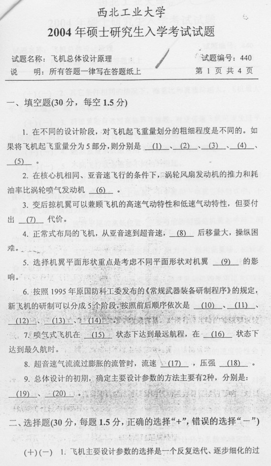 西北工业大学飞机总体设计原理历年半岛在线注册真题(4)
