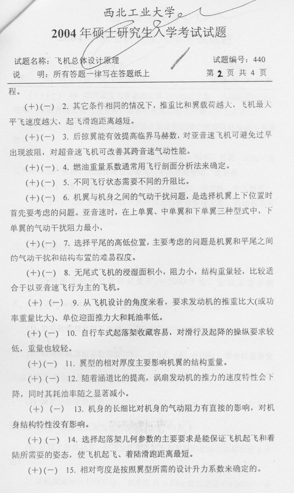 西北工业大学飞机总体设计原理历年半岛在线注册真题(5)
