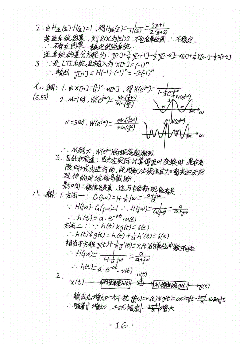 华南理工大学824信号与系统半岛在线注册历年真题答案(手抄版)2005-2016年(18)