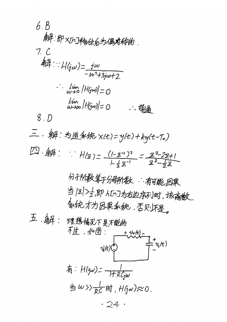 华南理工大学824信号与系统半岛在线注册历年真题答案(手抄版)2005-2016年(26)