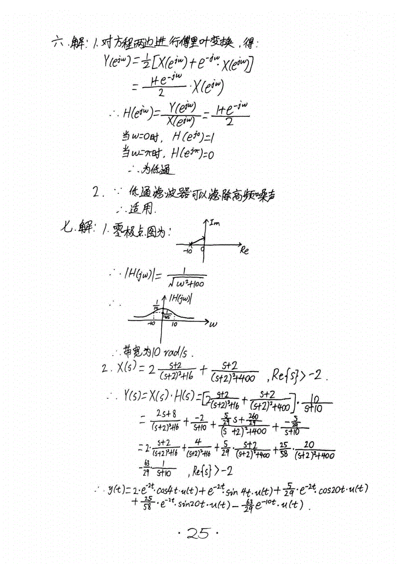 华南理工大学824信号与系统半岛在线注册历年真题答案(手抄版)2005-2016年(27)