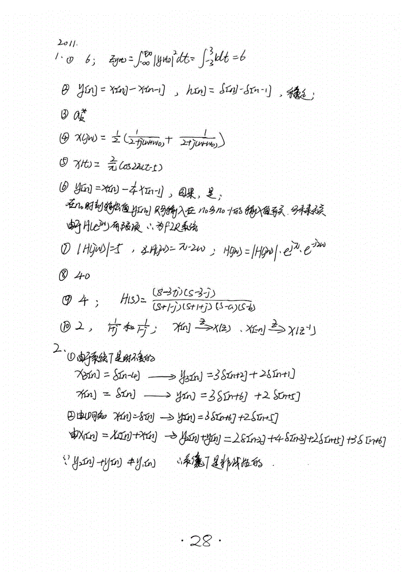 华南理工大学824信号与系统半岛在线注册历年真题答案(手抄版)2005-2016年(30)