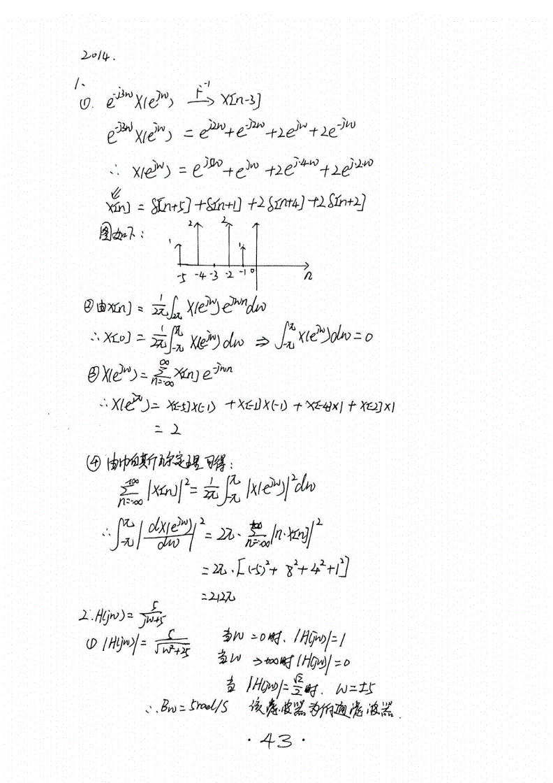 华南理工大学824信号与系统半岛在线注册历年真题答案(手抄版)2005-2016年(45)