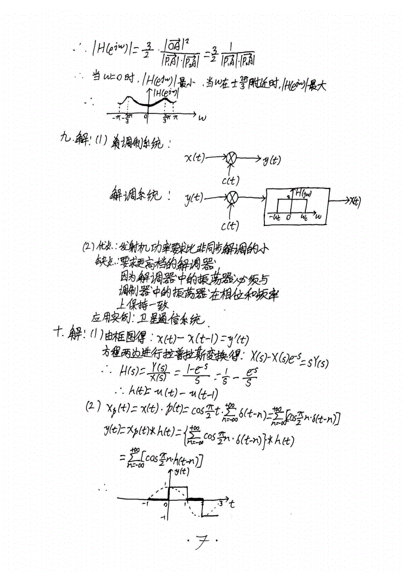 华南理工大学824信号与系统半岛在线注册历年真题答案(手抄版)2005-2016年(9)