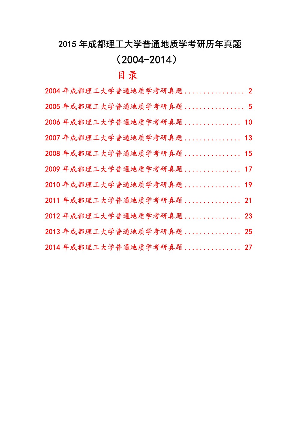 成都理工大学2014-2004普通地质学半岛在线注册试题真题