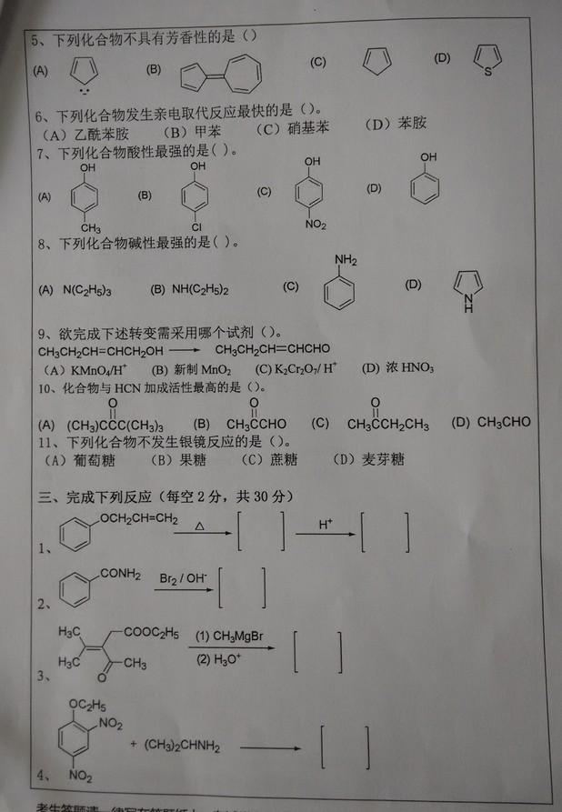 2014年华中师范大学有机化学719半岛在线注册真题(2)