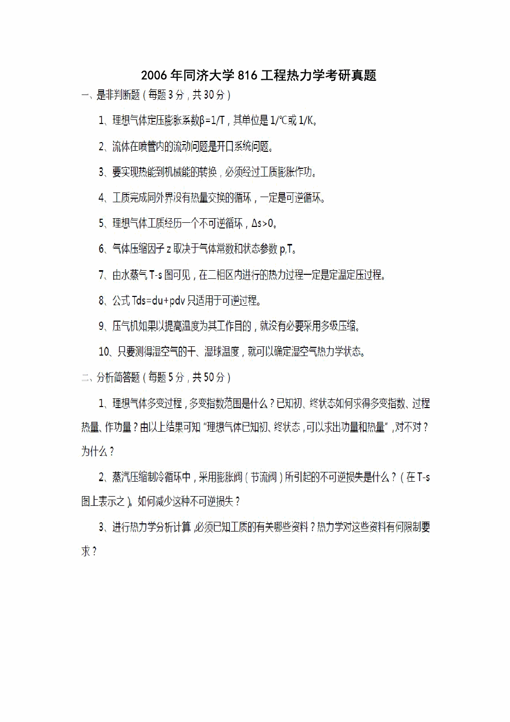 二、问答题(共50分,每小题5分 ...